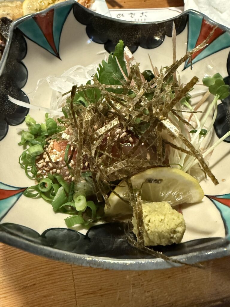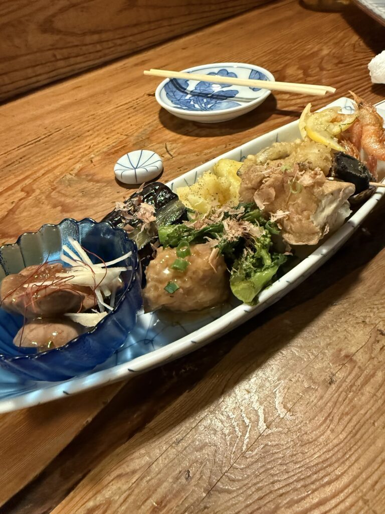 博多駅近く、地元の雰囲気満載の居酒屋さん。刺身やおばんざい、酒のアテが豊富で、地元の常連さんも多い感じでした。おばんざい盛り合わせが嬉しい。